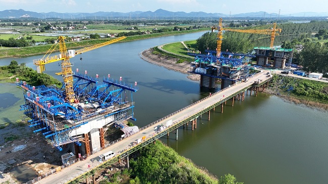 建工建投集團(tuán)繁昌區(qū)G236阮弄口至銅陵界一級(jí)公路改造工程二標(biāo)段項(xiàng)目全長(zhǎng)約5.839公里,公路等級(jí)為雙向四車道、一級(jí)公路,設(shè)計(jì)時(shí)速80千米/小時(shí)。目前,項(xiàng)目總體進(jìn)度已達(dá)60%,其中橋梁下部構(gòu)造完成96%,上部構(gòu)造完成40%,路基填方完成50%,軟基處理完成90%。作為全線控制性工程,黃滸河特大橋下部構(gòu)造基本完成,全面進(jìn)入橋面系施工階段,主體結(jié)構(gòu)力爭(zhēng)今年年底完成,為項(xiàng)目全線貫通奠定關(guān)鍵基礎(chǔ)。