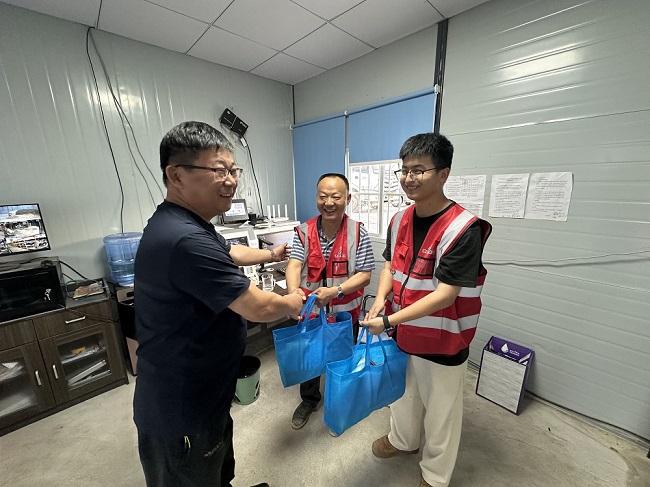 慰問期間,分公司領(lǐng)導(dǎo)詳細詢問了基層員工們近期的工作和生活情況,并對項目的安全生產(chǎn)工作進行了檢查,囑托大家在夏季工作過程中要注意防暑,做好衛(wèi)生防護工作,同時對大家在高溫天氣下兢兢業(yè)業(yè)的奮斗表示感謝。
