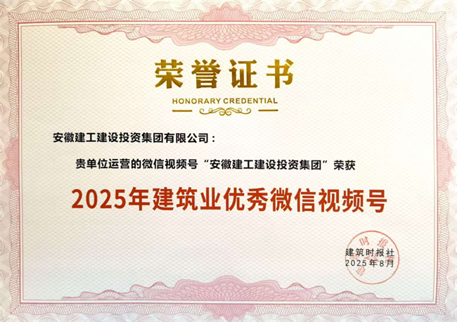 8月7日,由建筑時報主辦的“2025年建筑業微信公眾號運維交流研討會暨2025年建筑業優秀微信公眾號、視頻號發布會”在湖南省長沙市舉辦。公司官方新媒體平臺表現亮眼:微信公眾號連續六年蟬聯“全國建筑業優秀微信公眾號”,視頻號榮獲“2025年建筑業優秀視頻號”稱號,2025年元旦發布的主題視頻《創造!下一個“特別”》更獲評“2025年度建筑業優秀微信視頻十佳案例”獎項,為安徽省唯一獲該獎項的建筑業企業。