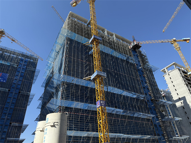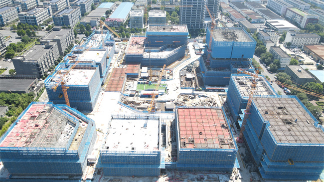 高科·數科技港項目現場塔吊林立,泵車揮舞長臂,將混凝土源源澆筑進節節攀升的樓體,施工人員揮汗奮戰,向著下一個重要節點目標奮力沖刺。截至當前,1號樓主體結構澆筑完成約50%;2#、4#、5#、6#、7#樓棟已接近全面封頂,計劃完成屋面女兒墻與構架施工,推進二次結構墻體砌筑施工;3號樓主體結構澆筑完成約70%。下一步,項目部將合理加快1號樓主體結構的施工節奏,保質保量完成項目重要節點目標。