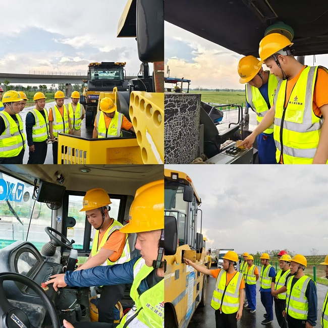 培訓現場,經驗豐富的資深設備操作員擔任指導老師,他們結合自身多年實戰經驗,圍繞攤鋪機、壓路機等核心路面設備的結構原理、安全操作規程、日常檢查保養要點、常見故障排查與應急處置方法等內容,進行了系統性的講解和手把手的實操演示。指導老師們傾囊相授,不僅講解技術規范,更分享了大量設備使用中積累下來的寶貴經驗和竅門,強調了嚴謹操作的重要性。