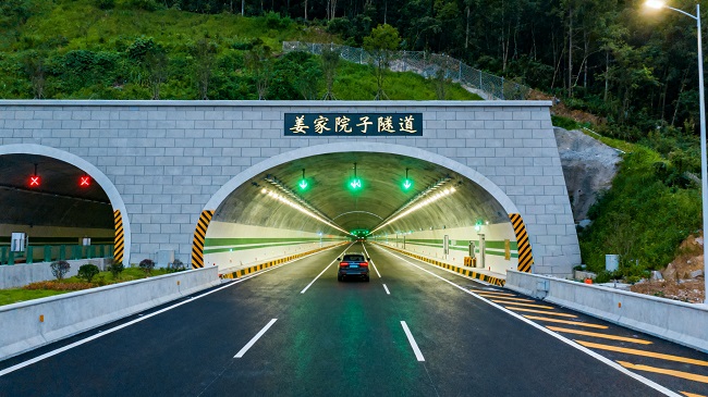 姜家院子隧道設計為雙向行駛的雙洞四車道高速公路隧道,其左線長達3370米,右線長達3415米,屬工程難度較高的“特長隧道”類別,是墊豐武高速公路項目的“咽喉”工程之一。隧道內共設有4道車行橫通道、9道人行橫通道及1座洞內變電所,全面保障未來運營期間的通行安全與應急疏散需求。同時,隧道采用先進的電光照明系統(tǒng)、高效的機械通風方式以及可靠的自流排水方案,致力于為司乘人員提供安全、舒適、綠色的行車環(huán)境。