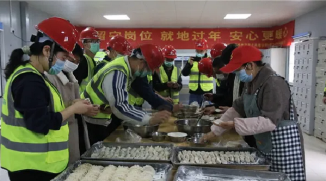 活動現場,教的人不厭其煩地講,學的人認認真真地包,大家邊聊邊包,互幫互教,各顯其能,歡聲笑語不絕于耳。今年21歲的項目部安全員徐銀柱去年大學畢業就來到項目部工作,今年也是第一次留在外地過年。“品嘗著自己親手包的餃子,感受到了濃濃的家鄉味道。在這里我也祝愿我的家人身體健康,萬事如意。”端起熱氣騰騰的餃子,選擇留在工地過年的徐銀柱眼角有些濕潤。也是在這一刻,家人般的團圓餃子讓彼此的心走得更近。