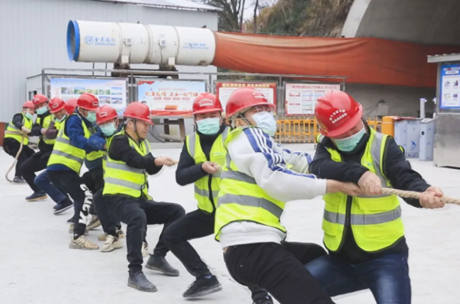 “我們在歙縣挺好,請家人放心,祝全國人民新年快樂……”就地過大年,溫情暖心間。2月4日,歙縣文旅體局組織文藝志愿服務小分隊奔赴黃千高速Ⅱ標蔡坑隧道出口,為留守崗位、就地過年的高速建設者送上了精彩的文藝演出,歌曲、舞蹈、串燒……現場歡歌笑語、掌聲不斷。“能為黃千高速建設出一份力,再苦再累,我們心甘情愿。”在互動環節,主持人隨機采訪高鐵建設者時,許多建設者額都認為,雖然今年積極回應國家就地過年的號召,不能陪家人一起過年,但是奮戰施工一線更能體現出作為一名筑路工人的價值。