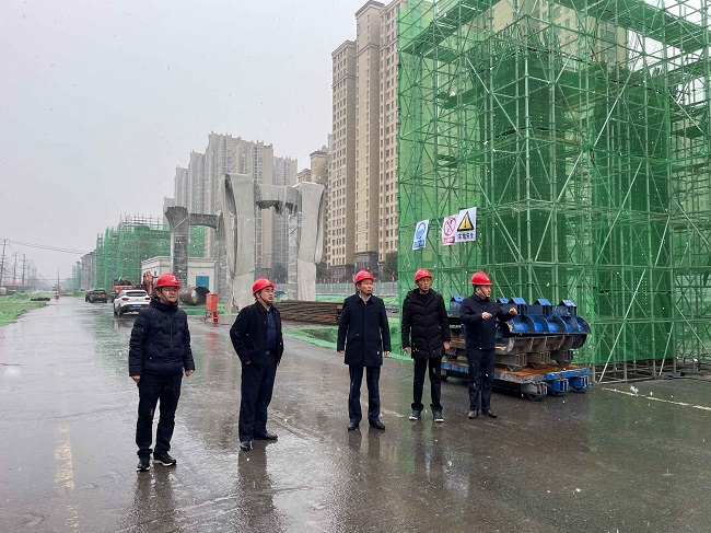 會后,盛明宏一行深入包公大道項目施工現場,冒雪實地查看項目建設情況,并提出指導意見。