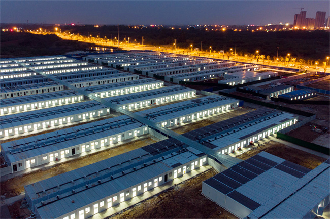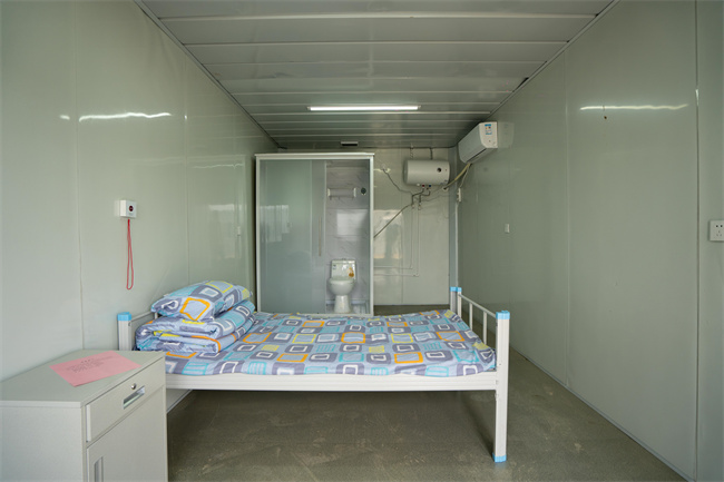 面對期短量大、環(huán)境艱苦、疫情嚴峻、資源調(diào)配難等困難,項目部成立黨員先鋒隊、青年突擊隊,用實際行動以沖鋒者的姿態(tài)全力保障工期,將一個個“不可能”變?yōu)楝F(xiàn)實。4月17日,A區(qū)360套隔離間完工交付。4月20日,A、B區(qū)共1000套隔離間完工交付。