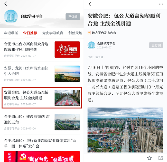 隨后,學習強國、人民網(wǎng)、央廣網(wǎng)、《安徽日報》、中安在線、《市場星報》、《合肥晚報》、《新安晚報》、安徽網(wǎng)等一批主流媒體重點報道路橋集團建設成果,網(wǎng)易、新浪、騰訊等平臺對稿件積極轉(zhuǎn)載。