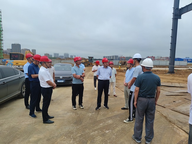 任杰一行深入基地項目施工現場,實地查看鋼結構廠房、研發辦公樓、職工中心、宿舍樓等建設現狀,聽取了項目關鍵節點、重難點問題的匯報,對基地項目當前的投資狀況、生產進度、安全質量等情況展開細致了解,并與項目參建各方進行了深入交流。