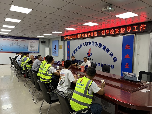 在黃千高速項(xiàng)目施工現(xiàn)場(chǎng),徐文聯(lián)實(shí)地查看了項(xiàng)目進(jìn)展情況,詳細(xì)聽(tīng)取了生產(chǎn)進(jìn)度、技術(shù)、質(zhì)量、安全及工期履約等各項(xiàng)工作情況匯報(bào),并肯定了當(dāng)前項(xiàng)目取得的各項(xiàng)成績(jī)。